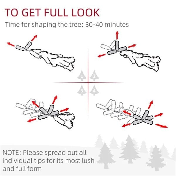 - In order to get a full appearance, please spread out all individual tips to get the best possible look from the tree, suggest you take 30-40 minutes to shape the tree.