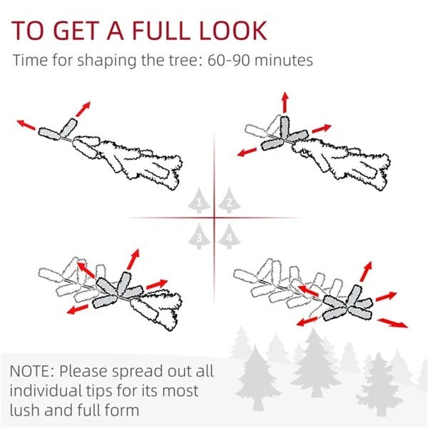 - In order to get a full appearance, please spread out all individual tips to get the best possible look from the tree, suggest you take 60-90 minutes to shape the tree.